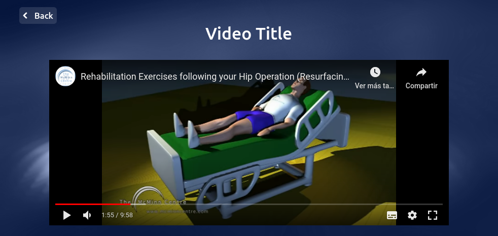 The video component provides a window that will play url of a video, it allows the user to play, pause or skip the video.